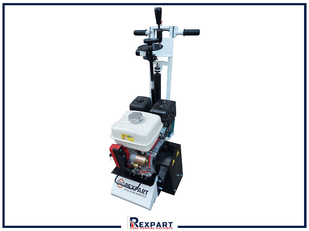 Yol çizgi silme makinesi, ufak, kullanımı kolay ve 25 cm genişliğe kadar çizgi silmeyi sağlar.
